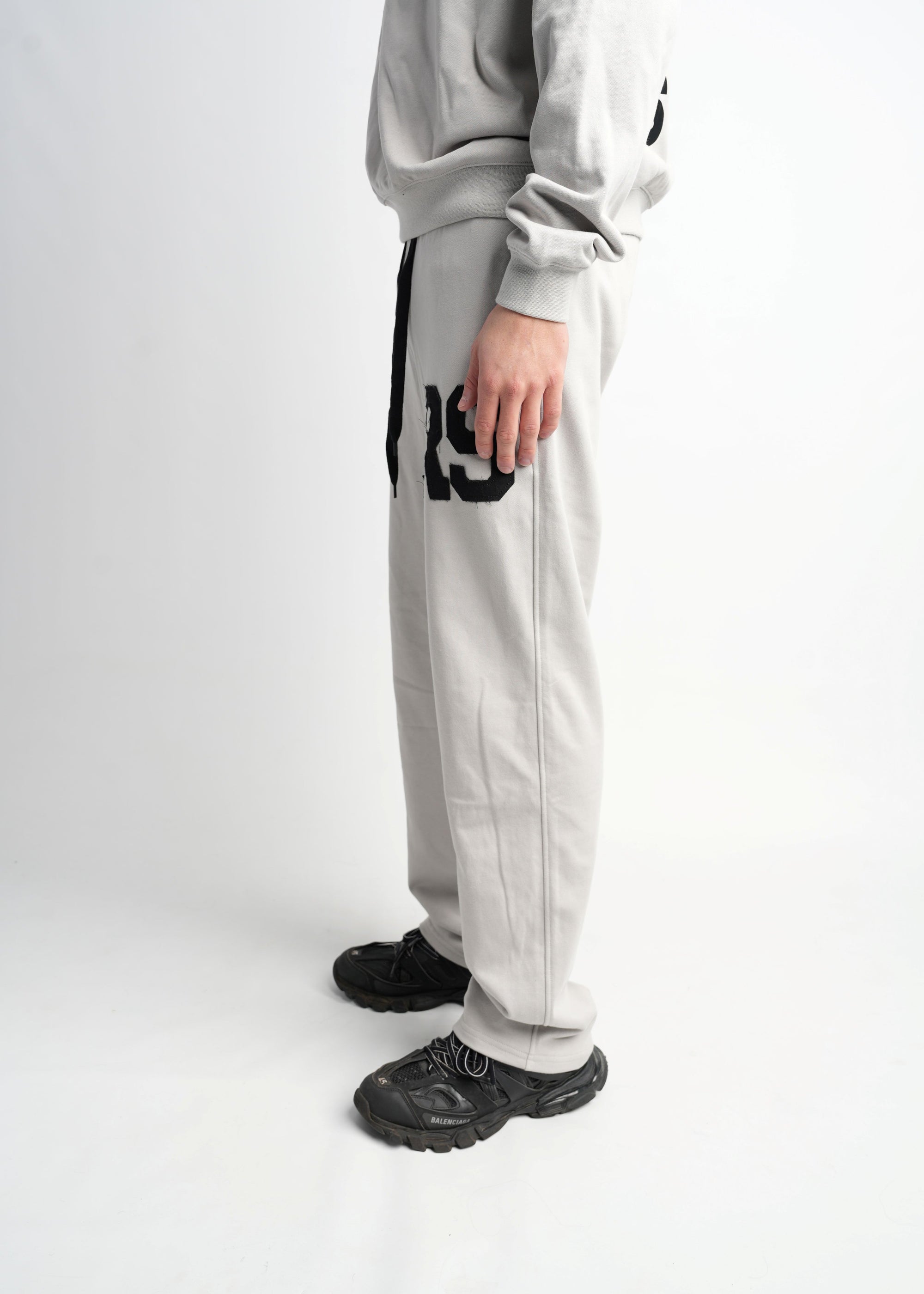 - Kleur van de hoodie is dusty grey en de bedrukking is de kleur zwart.
